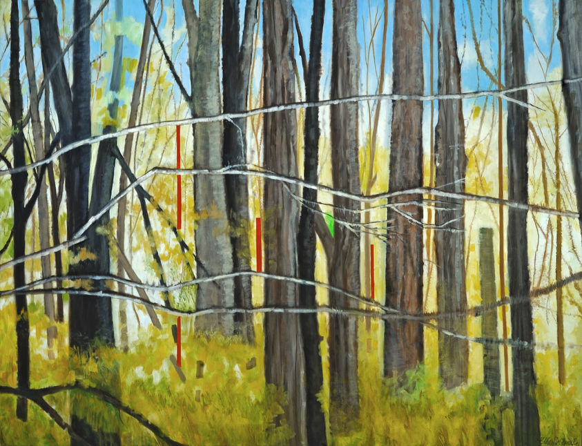 Ellen Sinel paints landscapes both real and imagined. She seeks to “develop an atmosphere of quiet and peace, sometimes with an overlay of mystery” Sinel’s work exposes the flux and instability of our environment due to climate change. Many of her paintings of trees are scenes from a moving train window. She spends summers on lower Cape Cod, where she captures the light, landscape, and seascape, as they continuously and dramatically shift. Her work is in collections, personal and corporate, throughout the US.